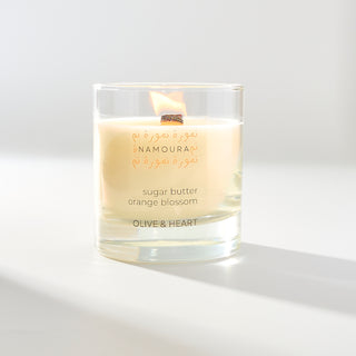 Scents inspired by Palestinian culture and shared experiences across the MENA region. Designed in-house, OLIVE & HEART hand poured candles are infused with custom scents and made with vegan wax. Our core candle collection is carefully labeled by hand on clear glass jars that boast a clean and modern style with scent names expressed in Arabic.